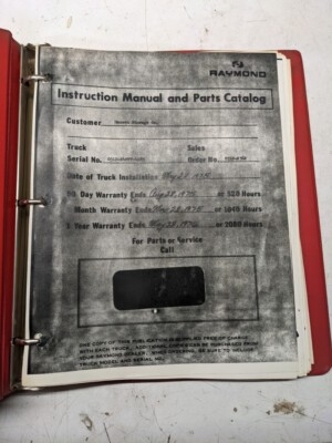 Raymond Parts Catalog List Book Operation Instruction Manual Model 31 1974