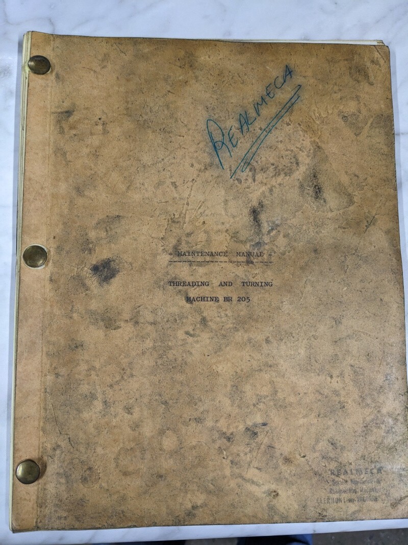 Realmeca Operator Service Manual Parts List Threading Turing Machine Br 205