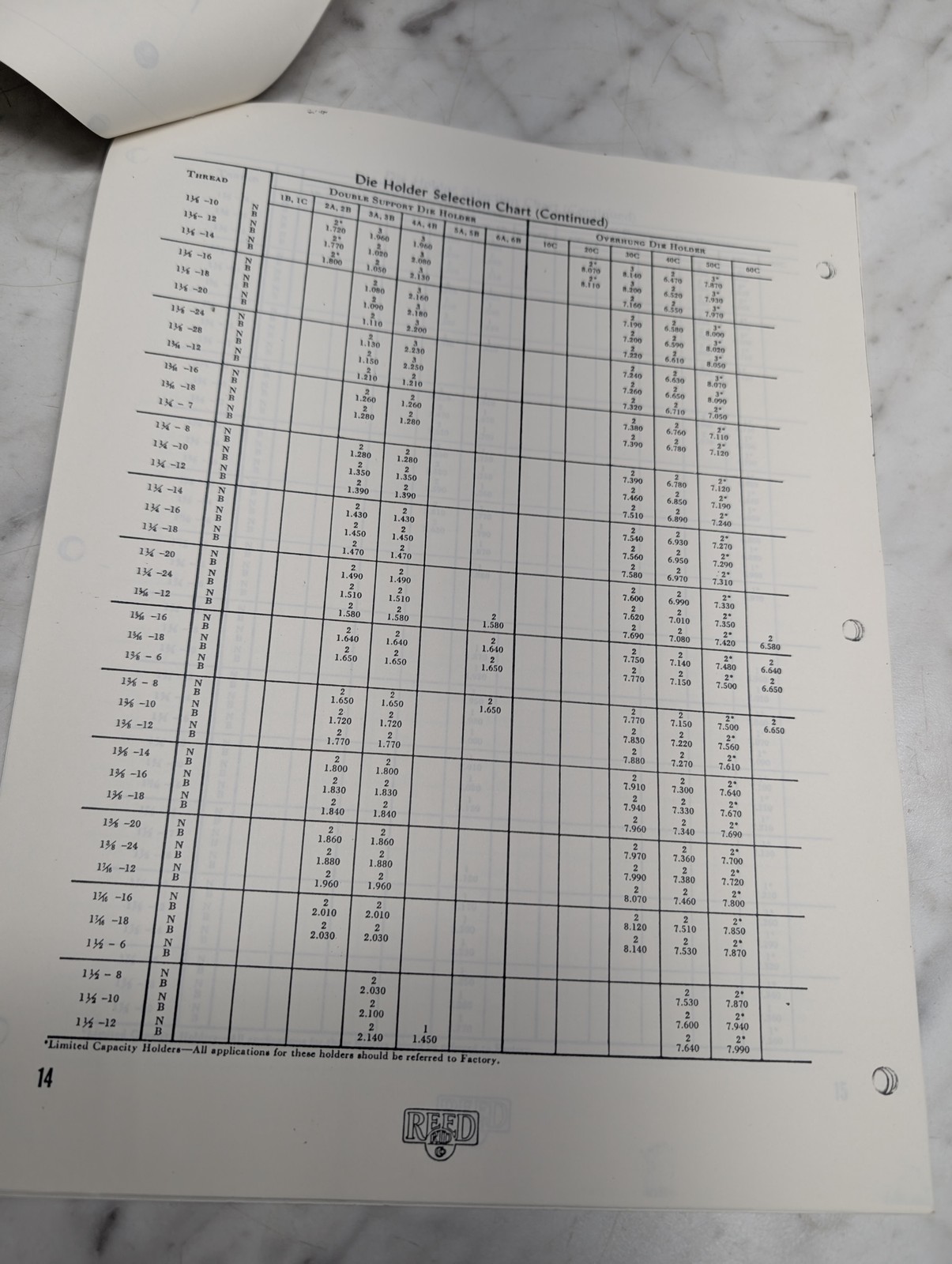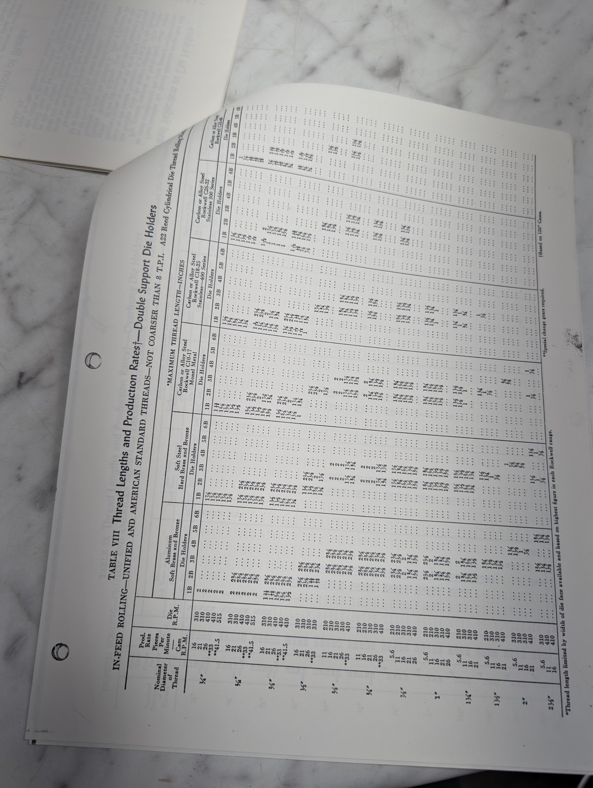Reed Preliminary Selection Of Die Holders Rate Production Table I Ii 10