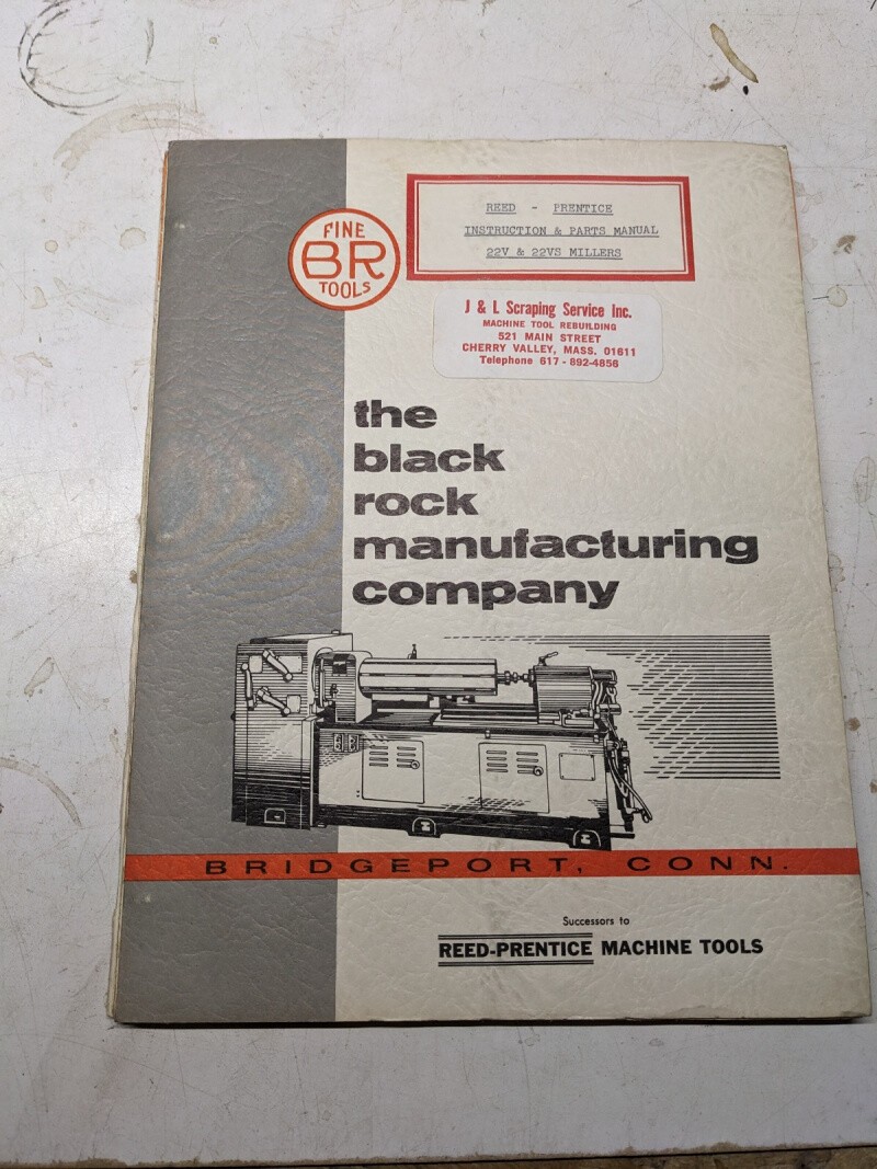 Reed-Prentice Machine Black Rock 22V 22Vs Milling Service Manual Parts List Book