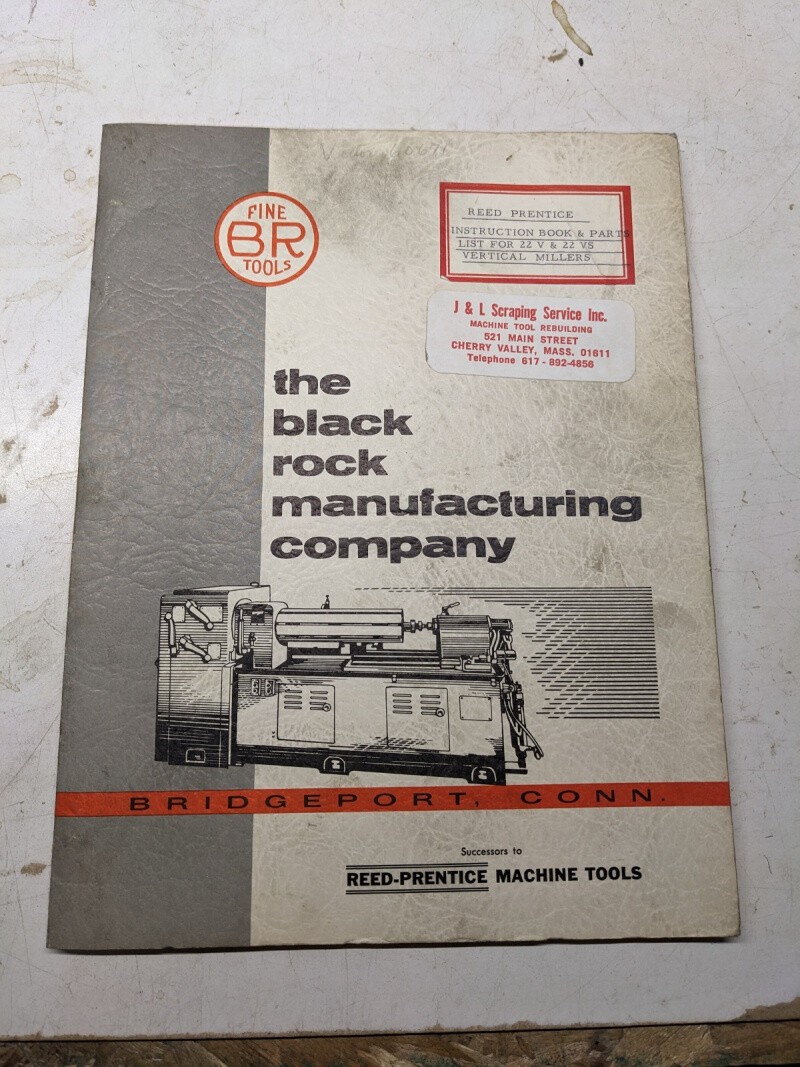 Reed-Prentice Machine Black Rock 22V 22Vs Milling Service Manual Parts List