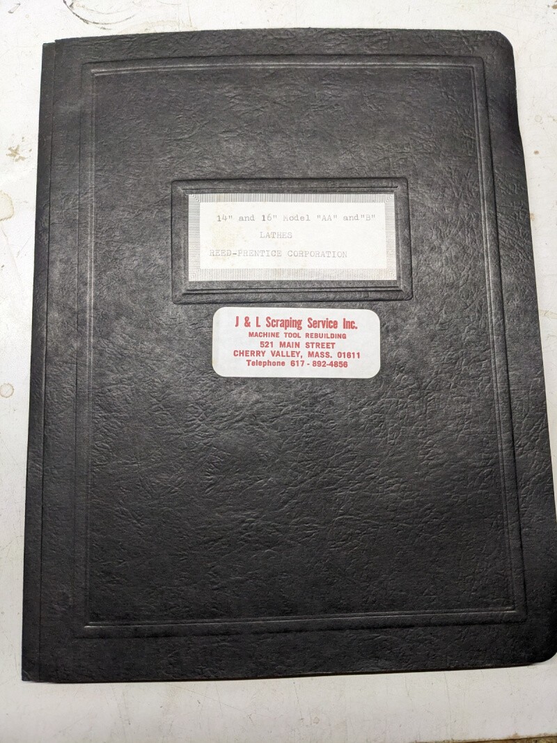 Reed-Prentice Machine Operator Service Manual Parts List 14 16” Lathes Aa B