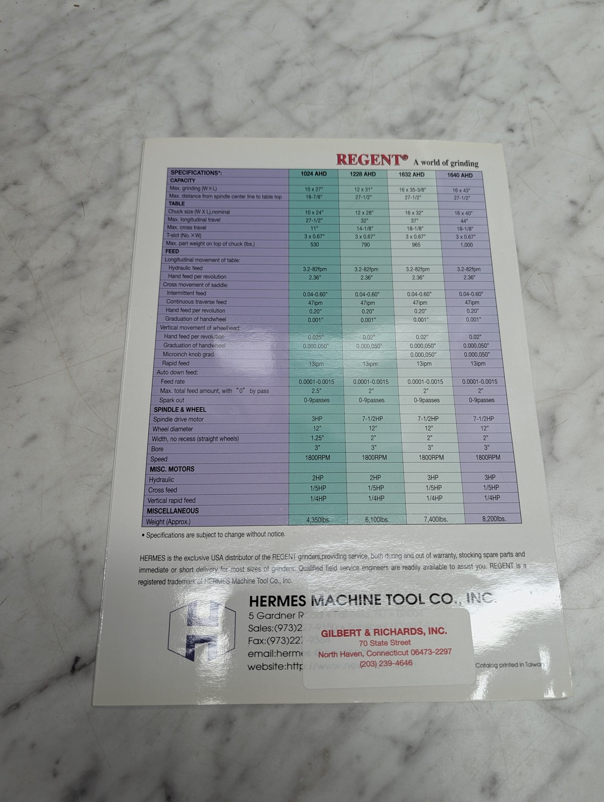 Regent Model 1632 Ahd Surface Grinders Saddle Type Sales Brochure