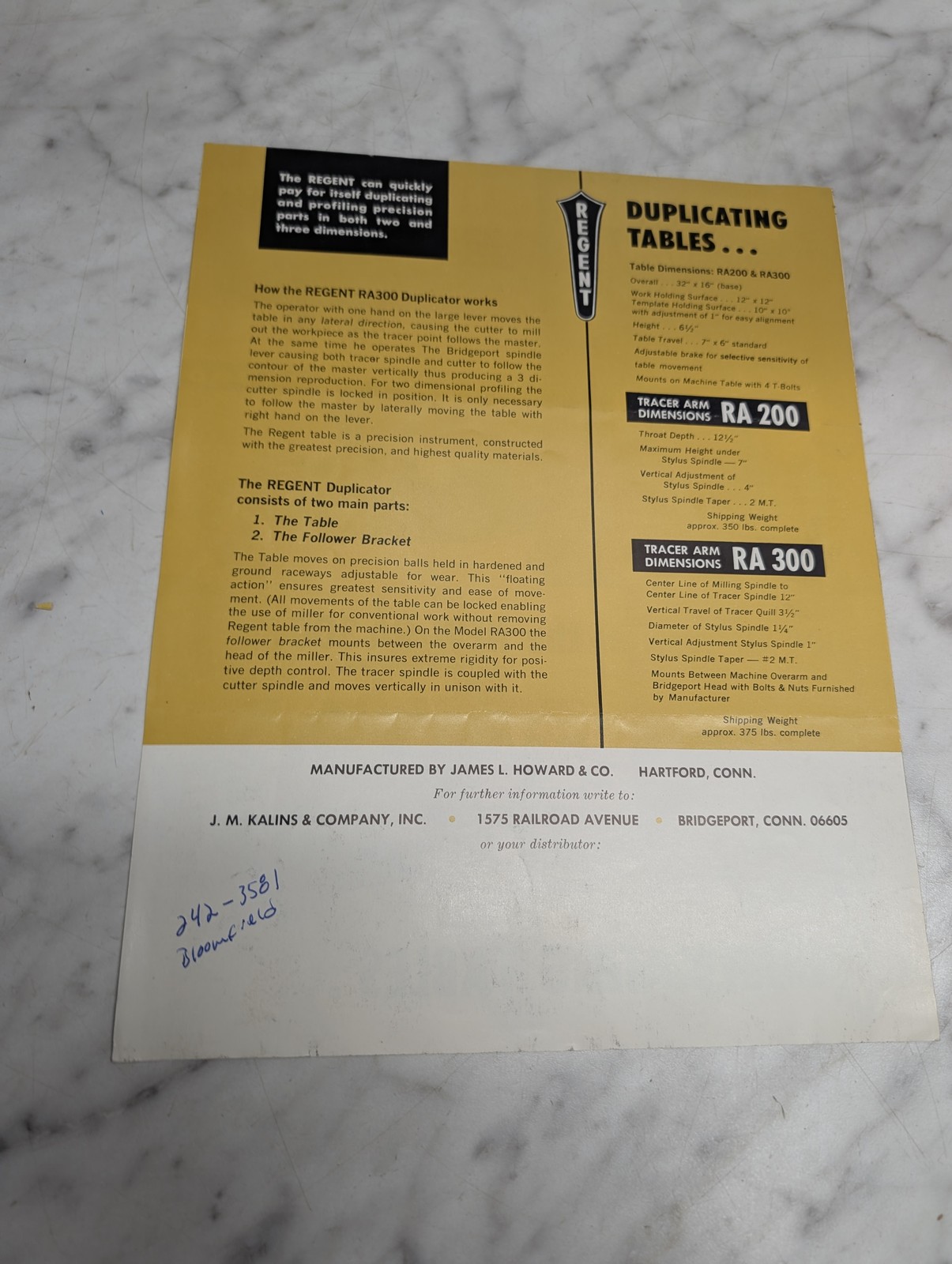 Regent Ra 200 Duplicating Tables New And Improved A Models Sales Brochure