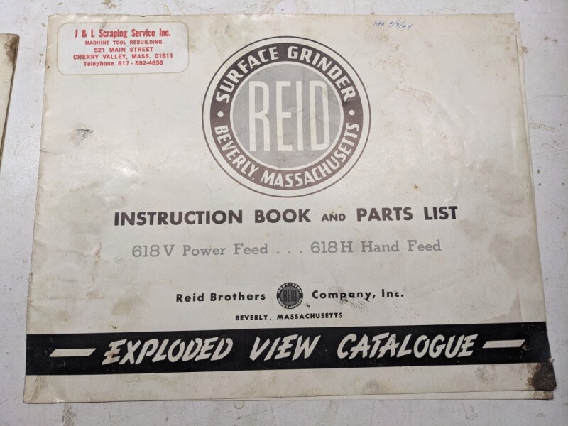 Reid Surface Grinder Instruction Service Manual Parts List Catalog 618V 618H