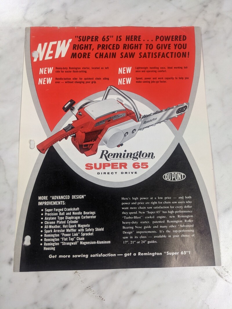 Remington Chainsaw Super 65 Sales Brochure Literature Advertisment Ad