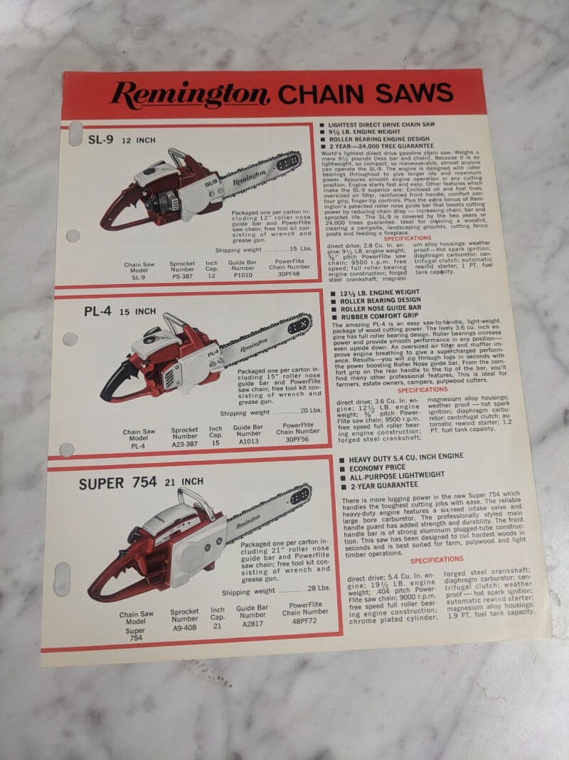 Remington Sl Pl 754 5 6 4 9 Chain Saws Sales Brochure Literature Advertisment Ad