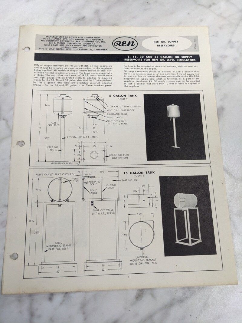 Ren Engine Oil Supply Reservoirs 5 15 30 55 Gallon Supply Dimension Sheet