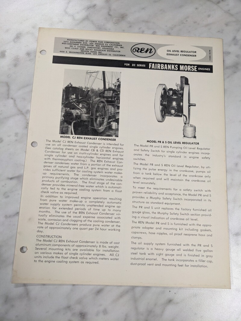 Ren Oil Level Regulator Owner Manual Parts List Zc Series Fairbanks Morse Engine