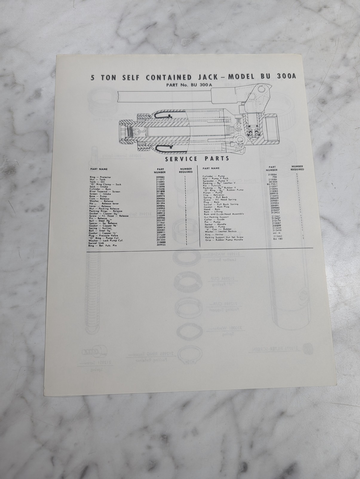 Repair Illustrated Parts List Sheet 5 Ton Self Contained Jack Model Bu 300A
