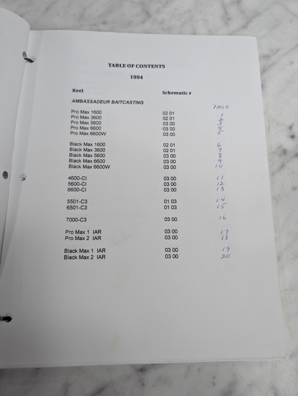 Repair/Service Parts List Book Catalog Manual Fishing Reels 1994 Abu Garcia