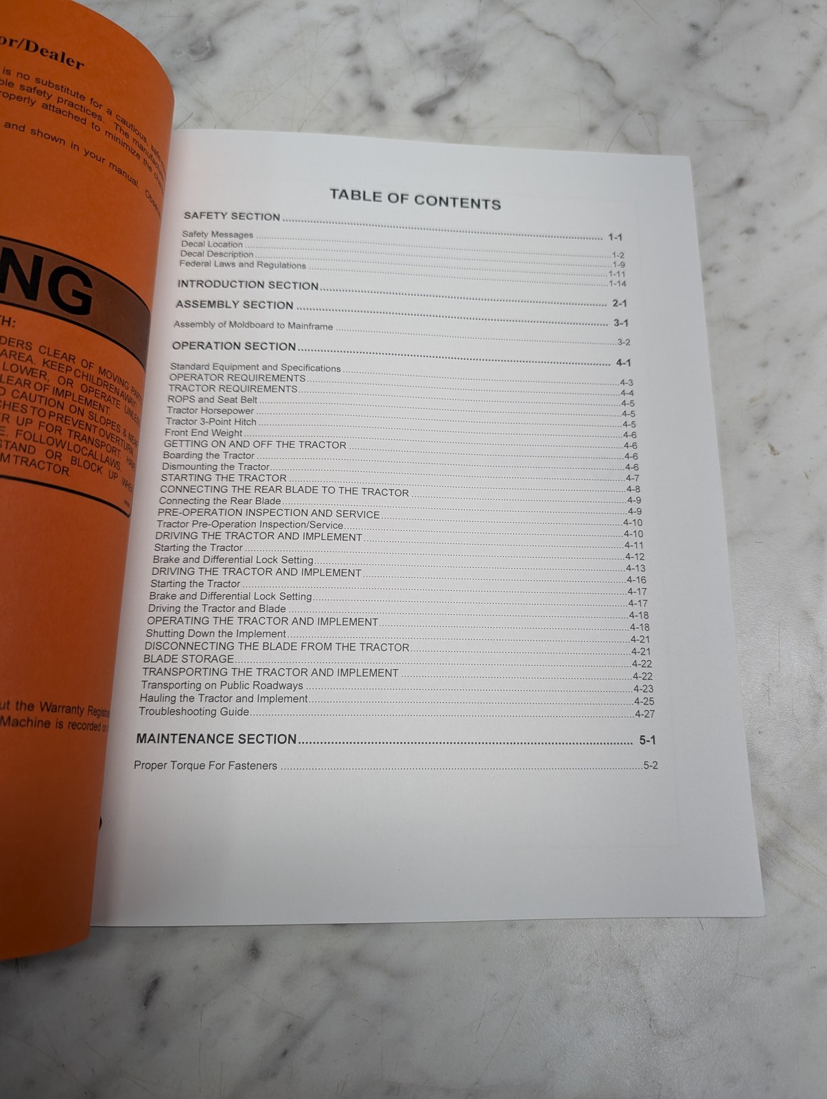 Rhino 200 Rear Mounted Blade Part No 00772211C Operator’S Manual Owners