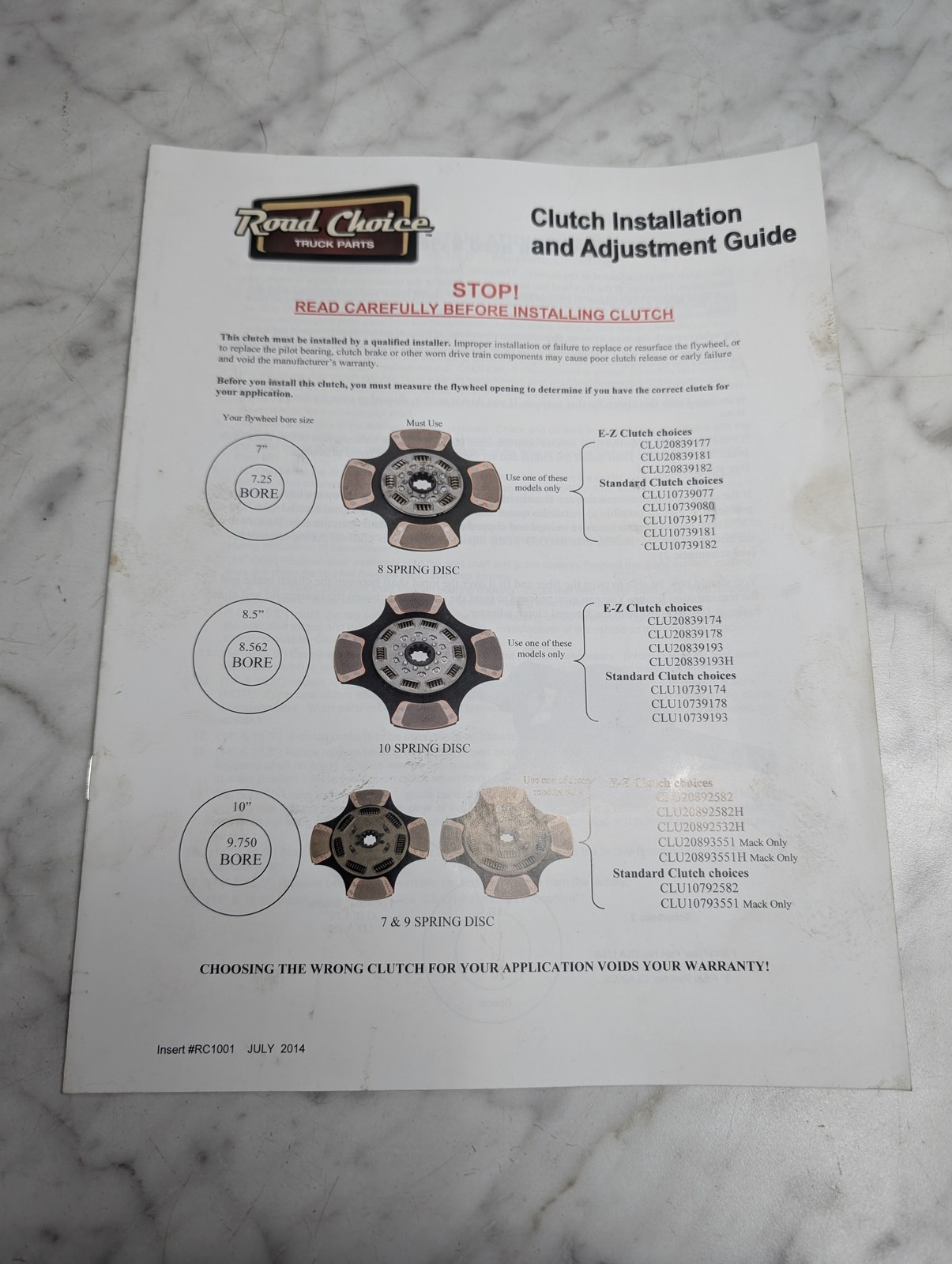 Road Choice Truck Parts Clutch Installation & Adjustment Guide Manual Ez