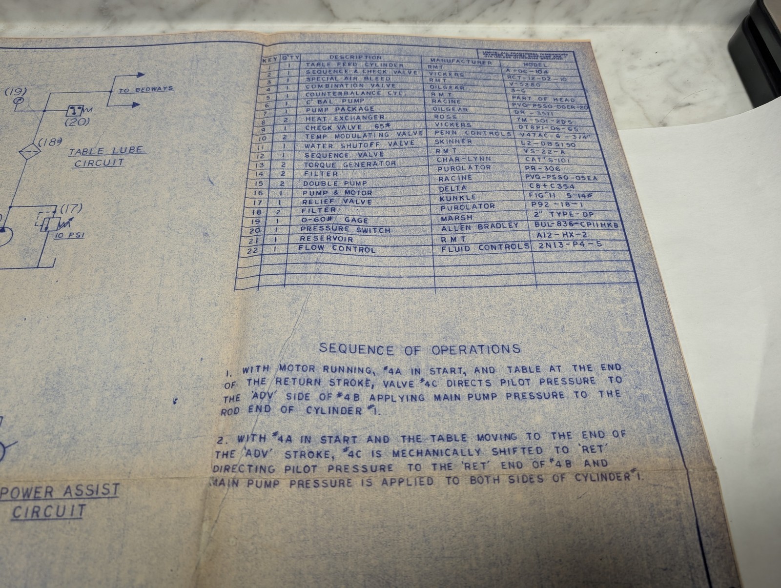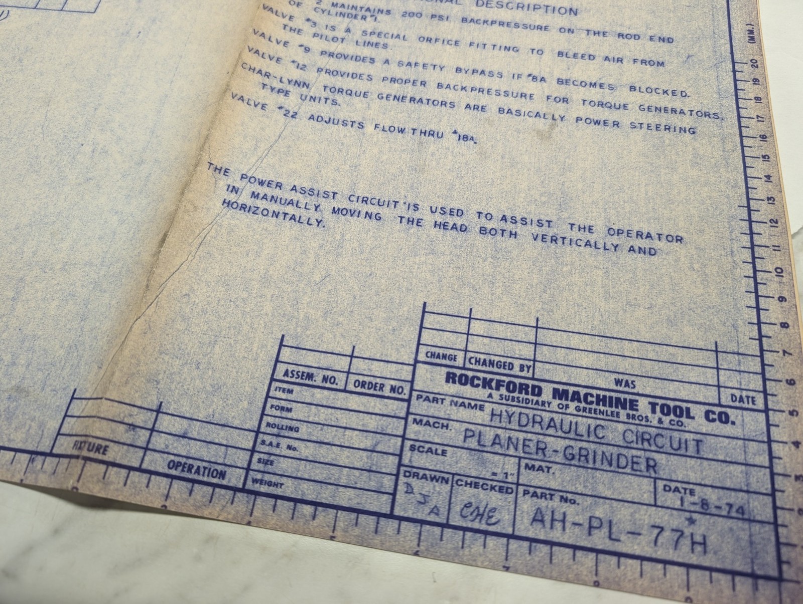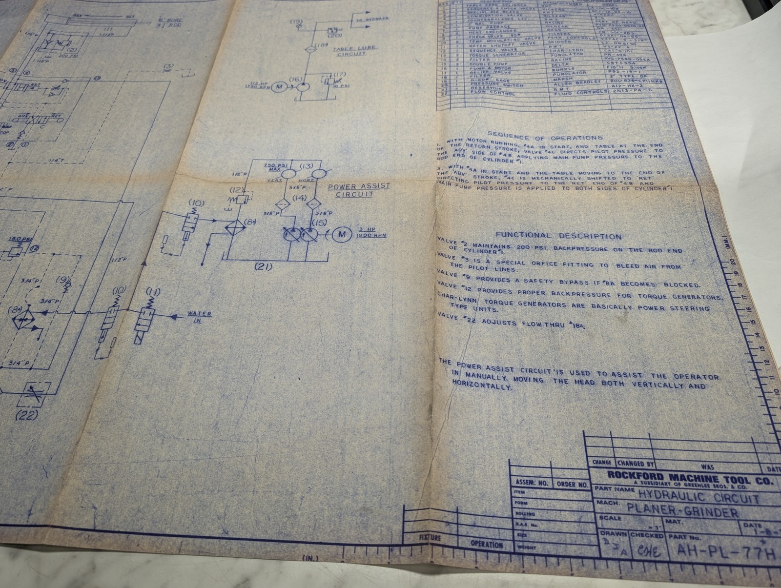 Rockford Machine Tool Hydraulic Circuit Diagram Print Drawing Planer Grinder