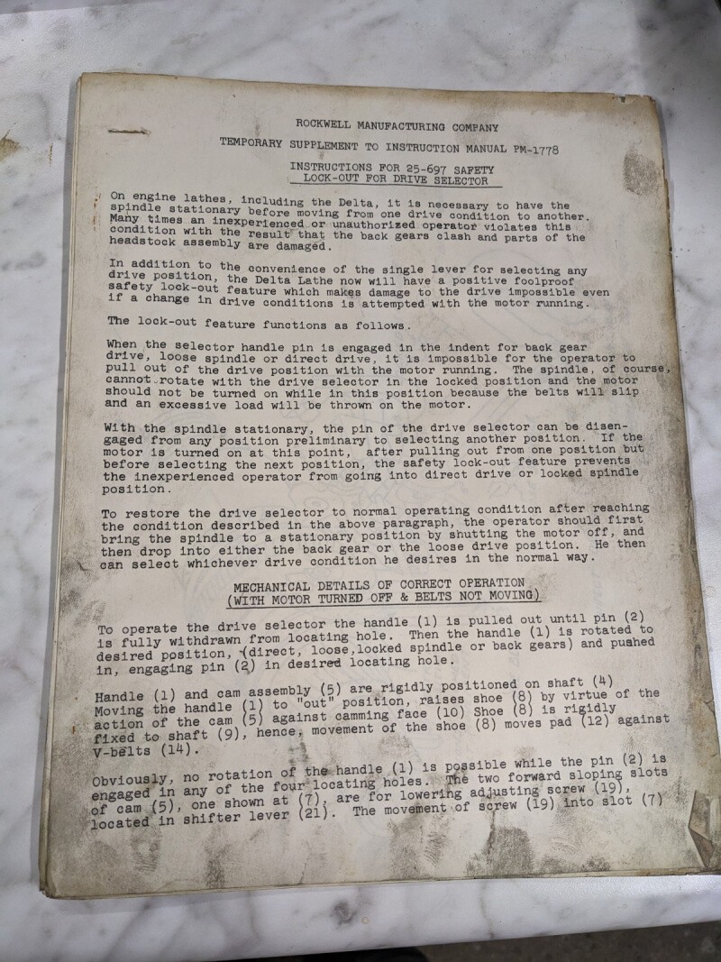 Rockwell Mfg Temporary Supplement Instruction Manual Pm-1778 25-697 Lock Out