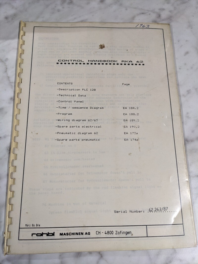 Rohbi Machine Control Service Handbook Manual Program Plc Rka Shop Saw 1987