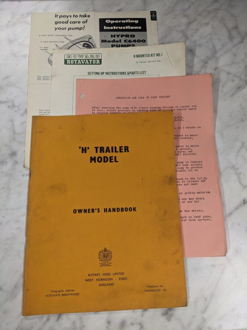Rotary Hoes Limited H Trailer Model Owners Operator Service Manual Handbook