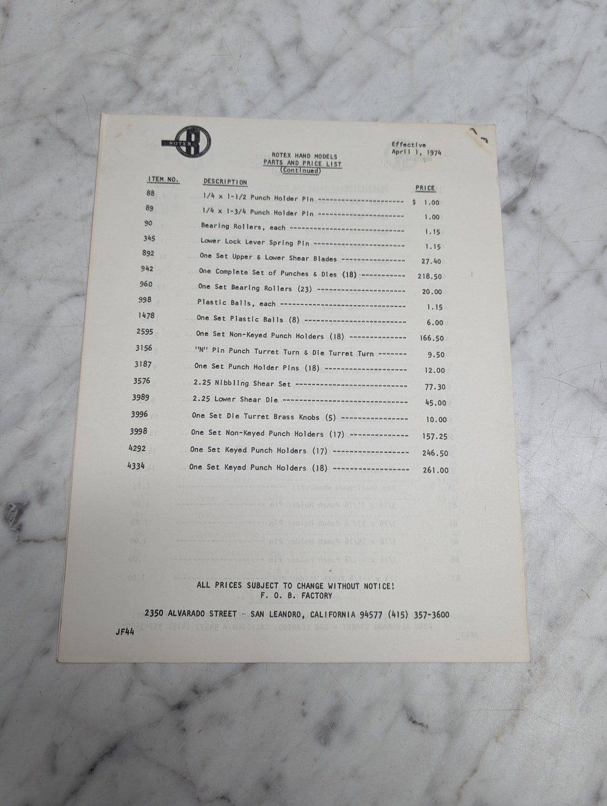 Rotex Punch 15A 18A Jf26 Installation Lubrication Instructions Specification