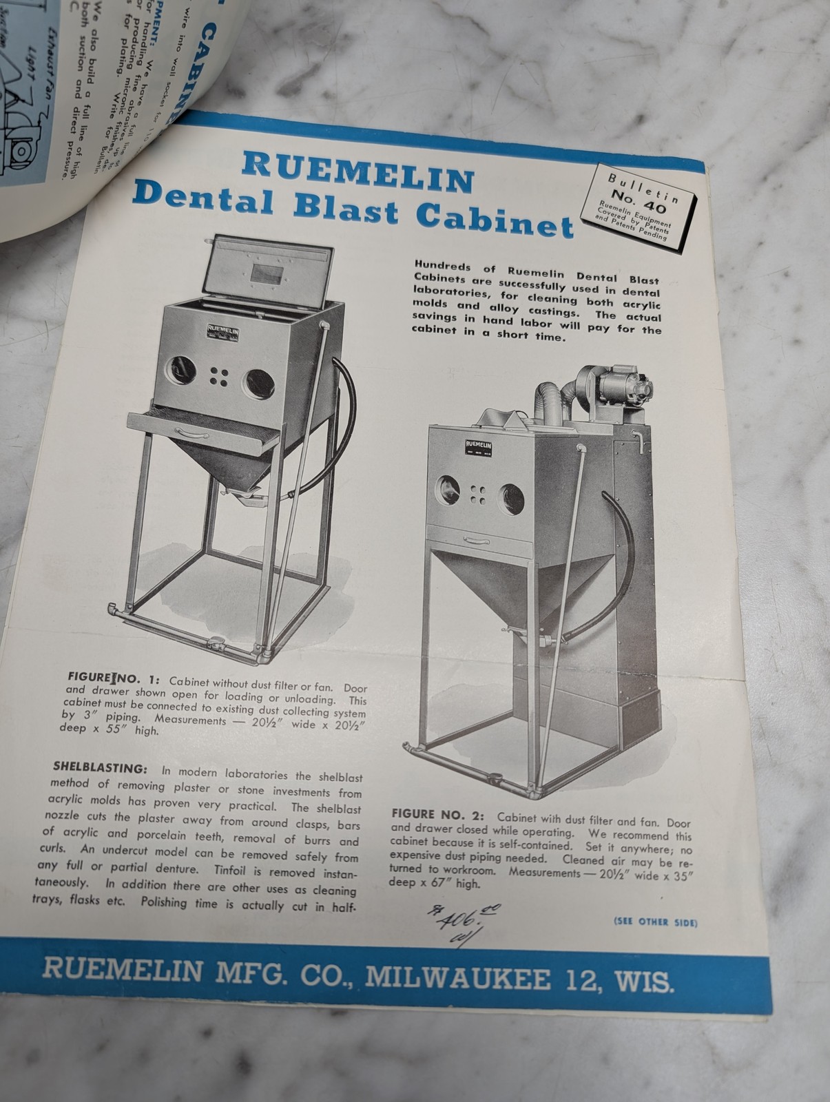 Ruemelin Utility Blast Cabinets 20 X 30 Compartment Bulletin 41 Sales Brochure