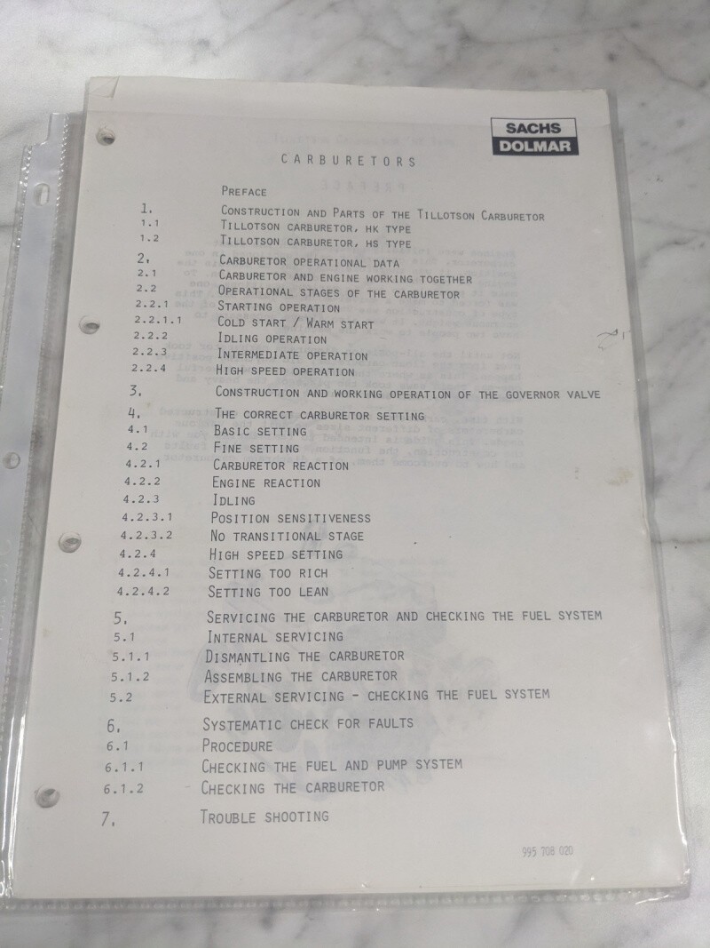 Sachs-Dolmar Service Manual Parts List Chain Saw Carburetors Tillotson