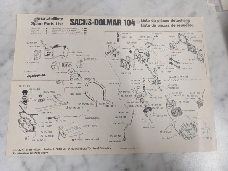 Sachs-Dolmar Spare Service Parts List Book Manual Chainsaw 104