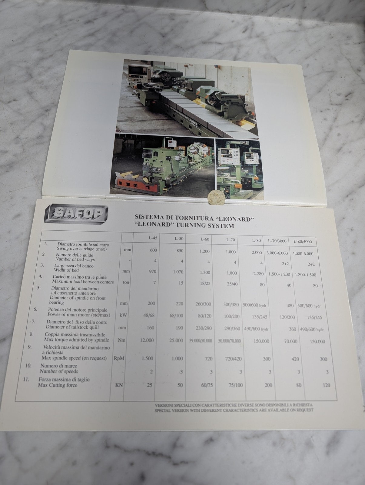Safop Leonard 30/45 Cnc Sistema Di Tornitura Turning System Catalog Literature