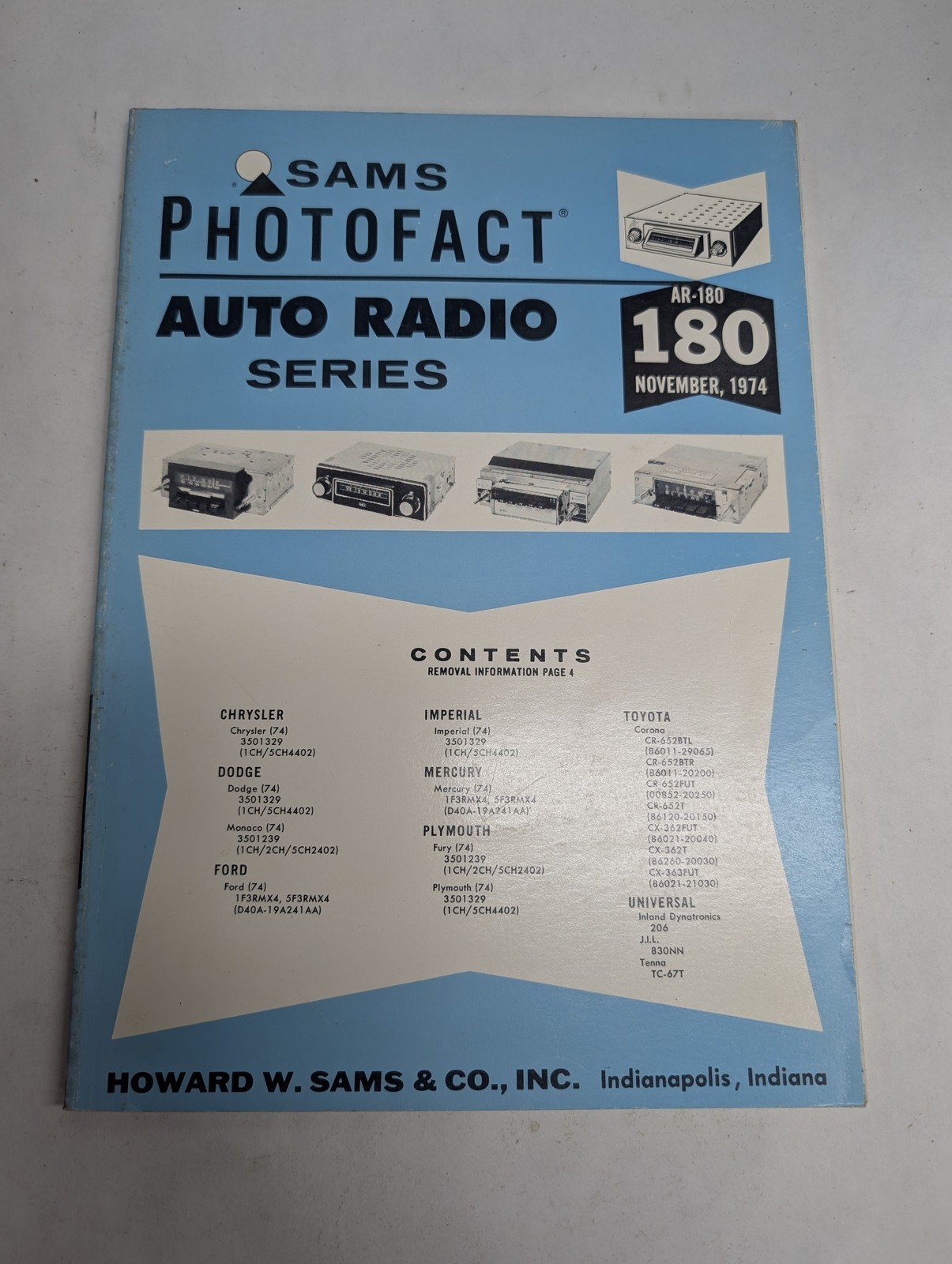 Sams Photofact Car Audio Auto Radio Series Repair Data Manual Volume Ar-180 1974