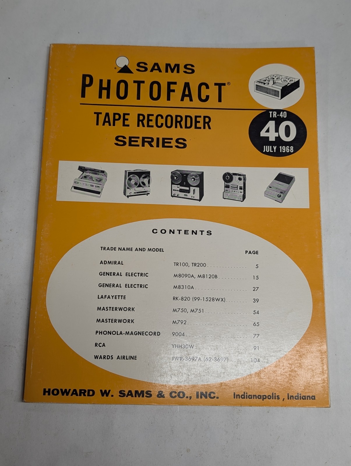 Sams Photofact Radio Tape Recorder Series Repair Data Manual Volume Tr-40 1968