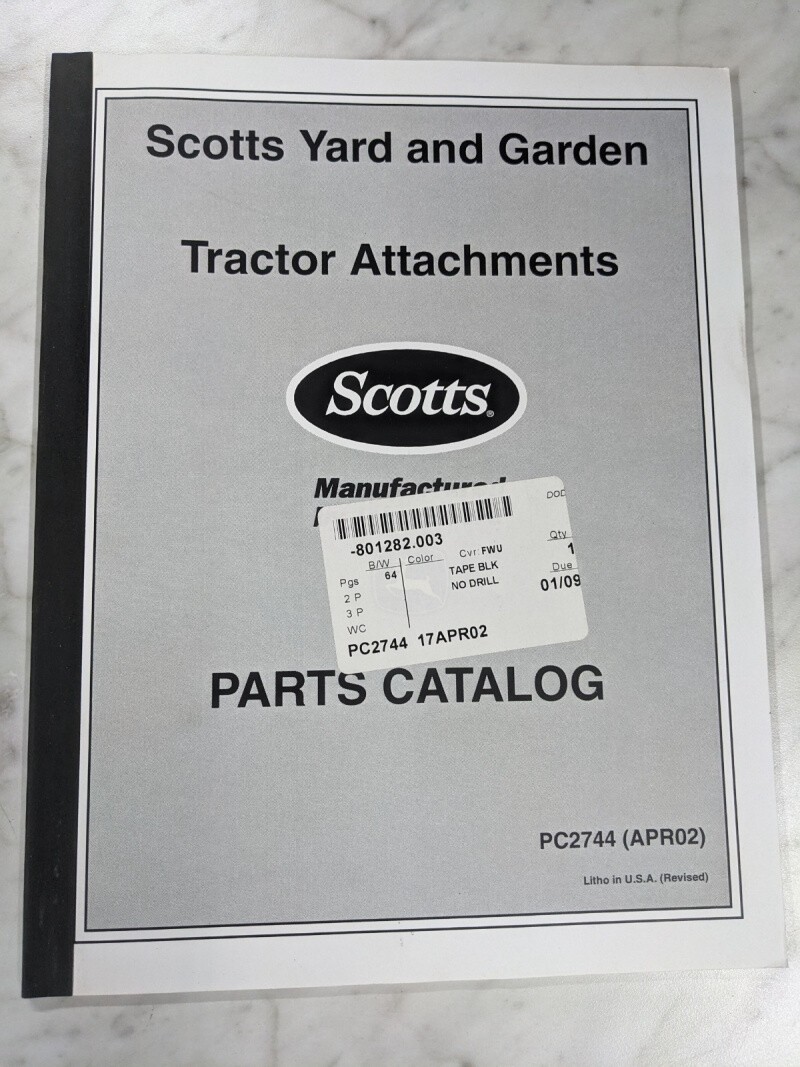 Scotts Yard & Garden Tractor Attachments Parts List Catalog Manual Pc2744