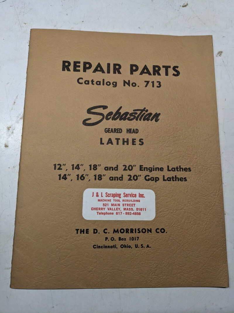 Sebastian Repair Parts List Book Manual Catalog Engine Gap Lathe 12-20” Geared