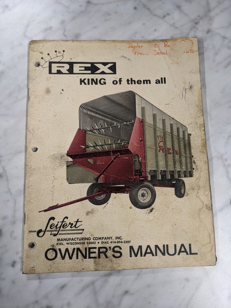 Seifert Mfg Owner Operator Service Manual Rex King Of Them All 1973