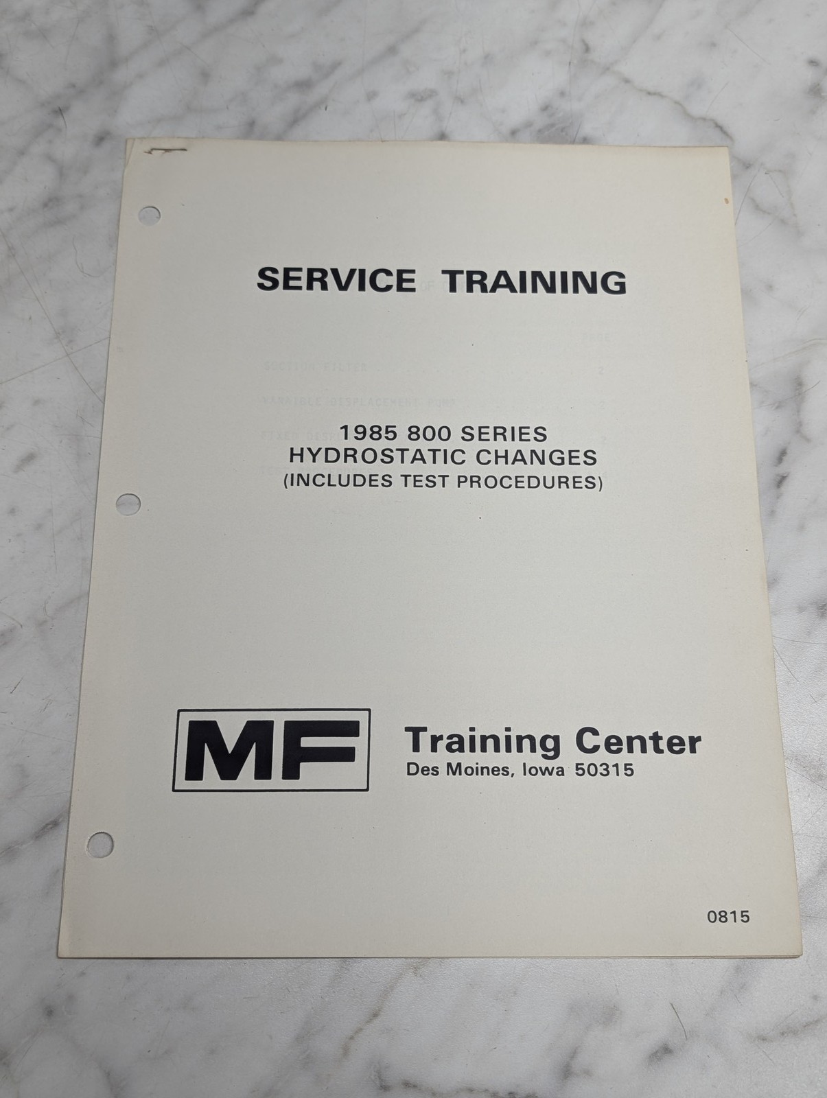 Service Training 1985 800 Series Hydrostatic Changes Manual Service Repair Maint