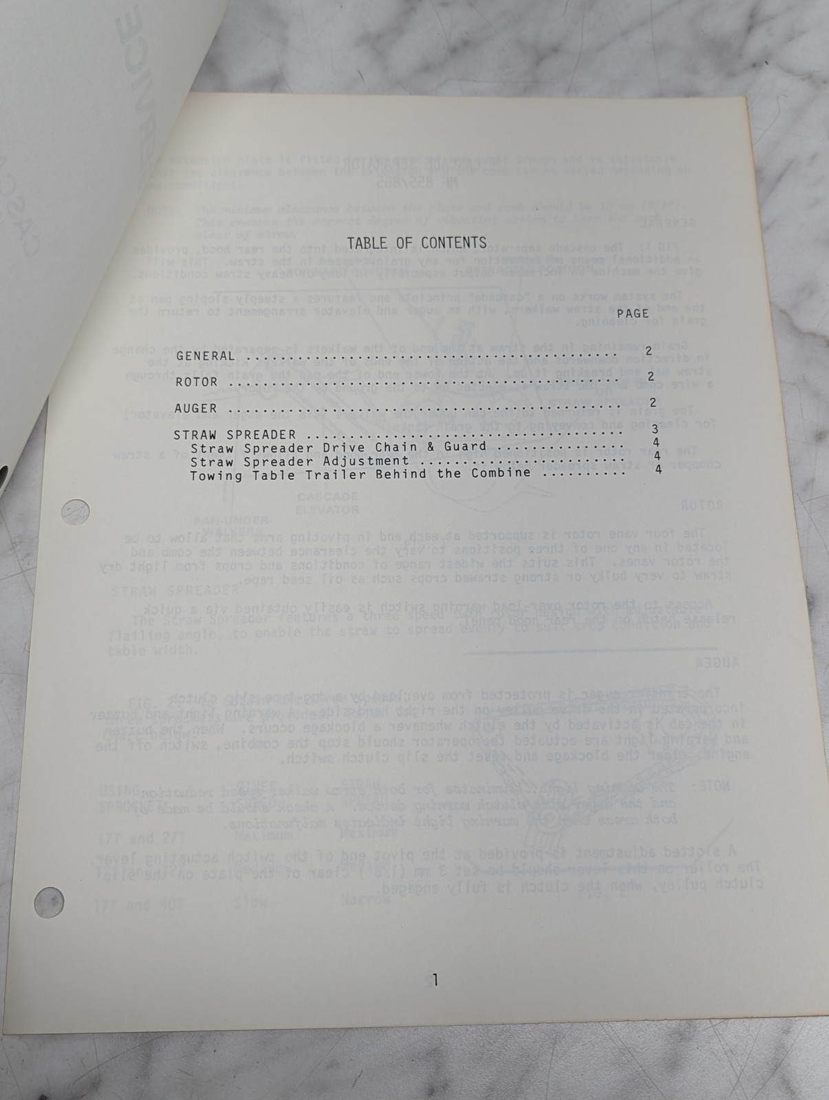 Service Training Cascade Separator Straw Spreader 855 865 Manual Repair Shop