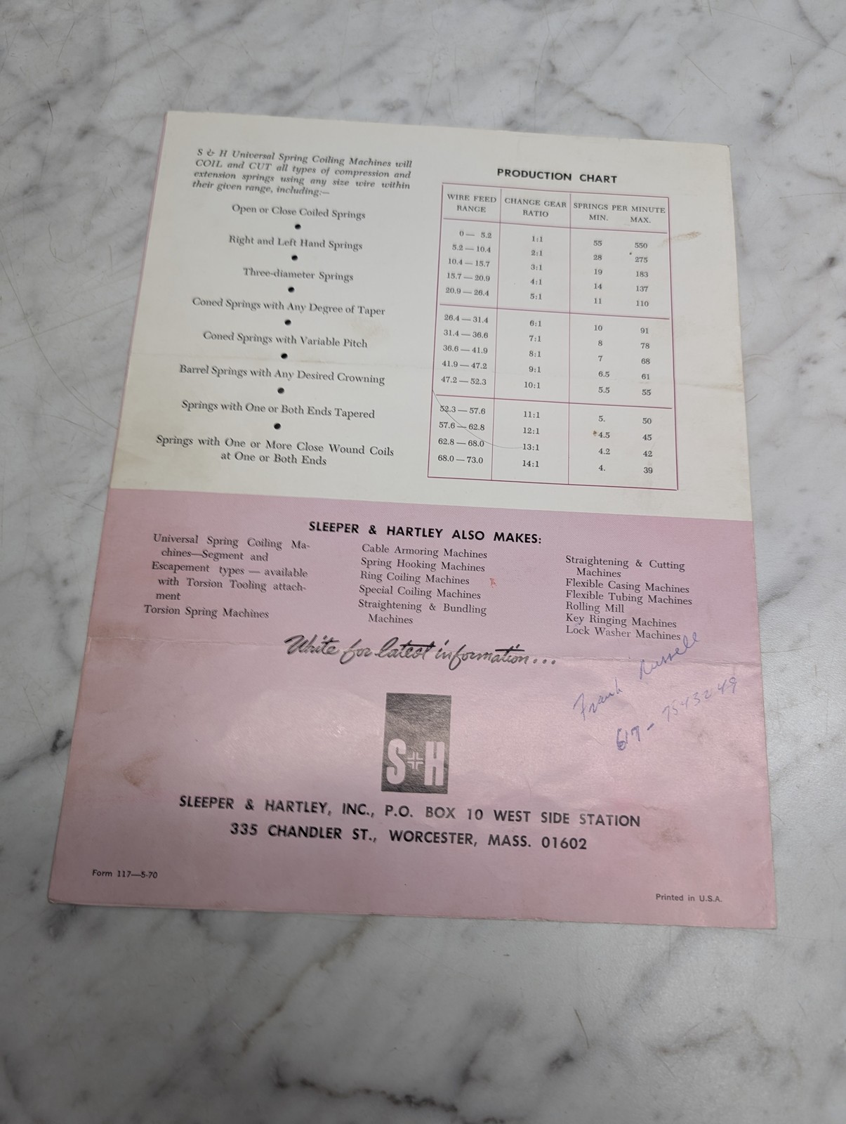 S&H No 0 Universal Spring Coiler Escapement Type Series 720 Sales Brochure