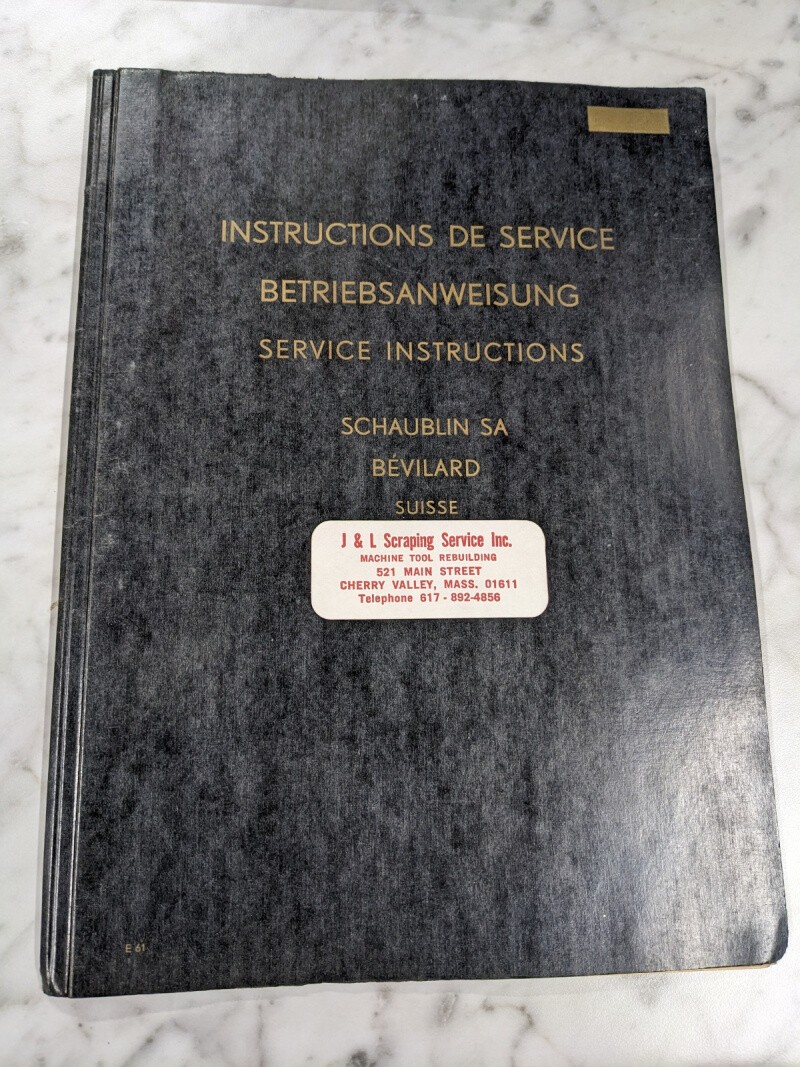 Shaublin Operator Instruction Service Manual 120-To Cabinet Lathe Machine Tool