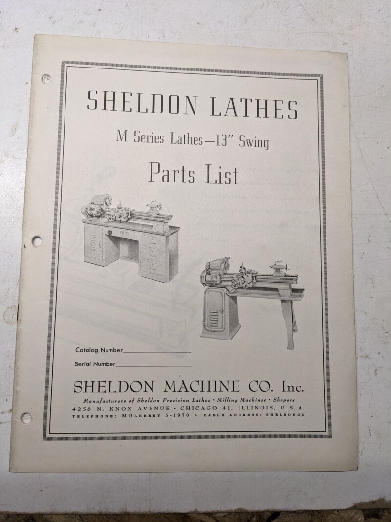 Sheldon Machine Parts List Book Manual Catalog M Series 13” Swing Lathes