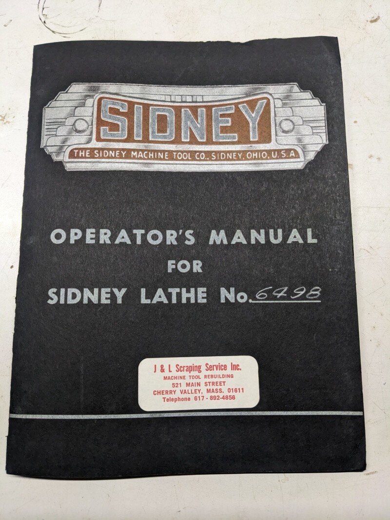 Sidney Machine Operator’S Manual Parts List Book 14” 16” 18” 20” Lathes Model
