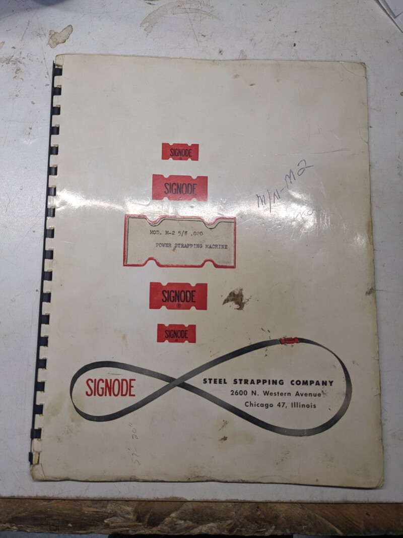 Signode Strapping Power Machine Mod M-2 5/8 0.020” Operator Service Manual Parts