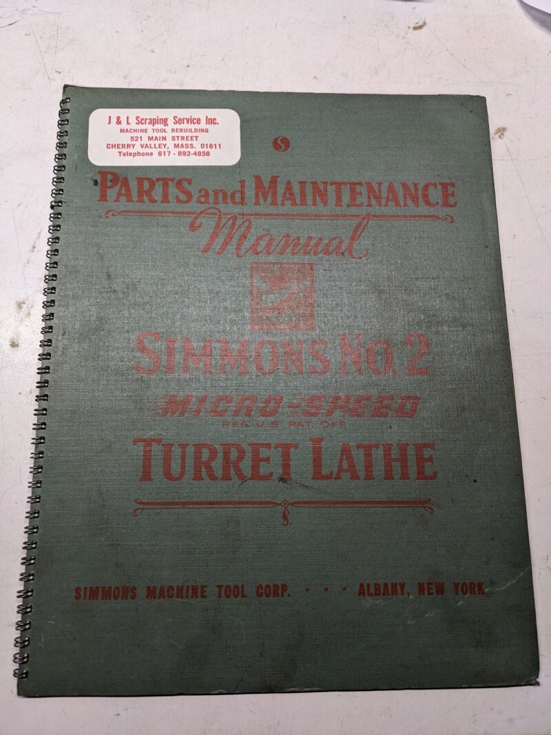 Simmons Machine Tool Parts Book List Maintenance Manual #2 Micro Speed Lathe