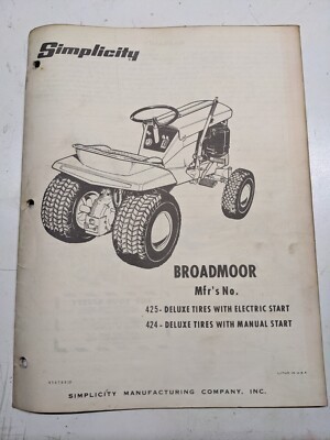 Simplicity Operator Manual Part List Broadmoor Tractor 425 424 Model Owners