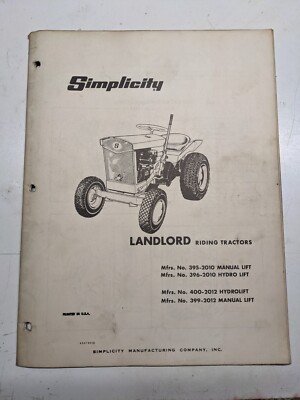 Simplicity Operator Manual Part List Landlord Tractor 395-2010 396 400-2012 399
