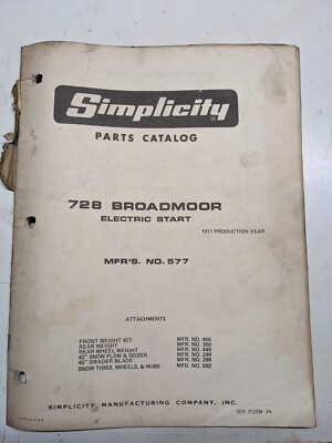 Simplicity Part Book Catalog List Broadmoor Tractor 728 No 577