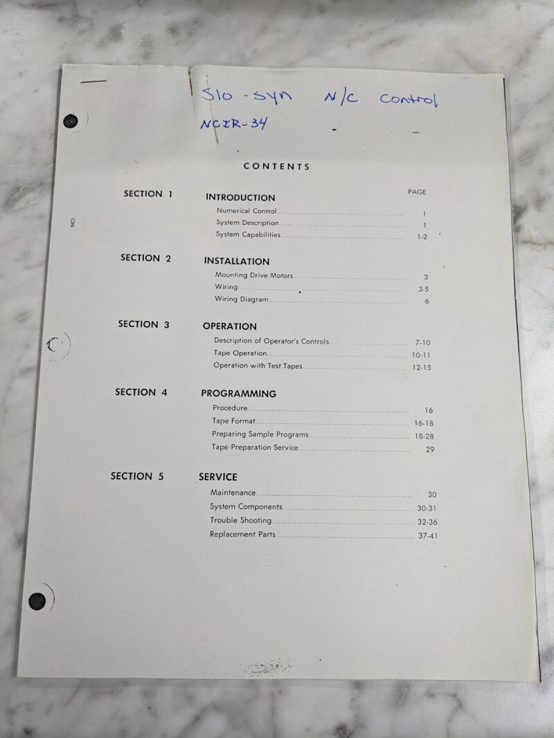 Slo-Syn N/C Control Ncn Ncir-34 Operator Service Manual Parts List Book Copy