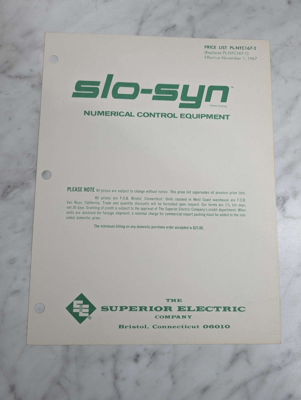 Slo-Syn Numerical Control Equipment Cnc Pl-Ntc167-2 Sales Price List Brochure