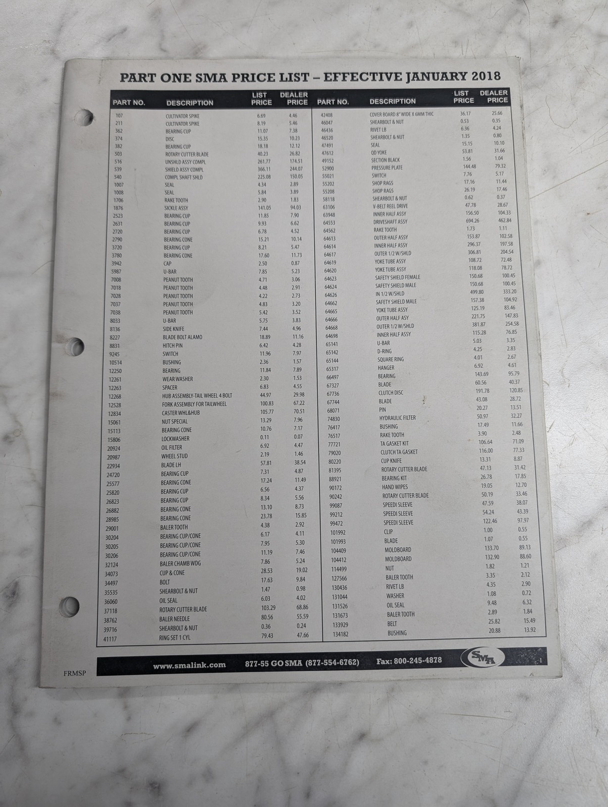 Sma Parts Price List Catalog Dealer Sales Literature 2018 Smalink ~~Part 1 Of 3