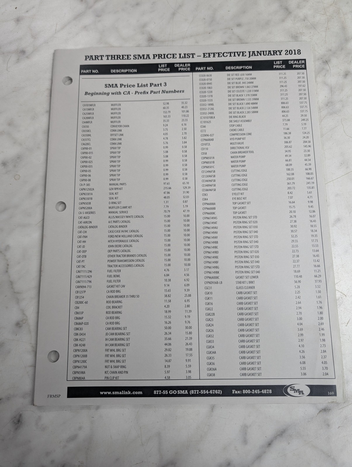 Sma Parts Price List Catalog Dealer Sales Literature 2018 Smalink ~~Part 3 Of 3