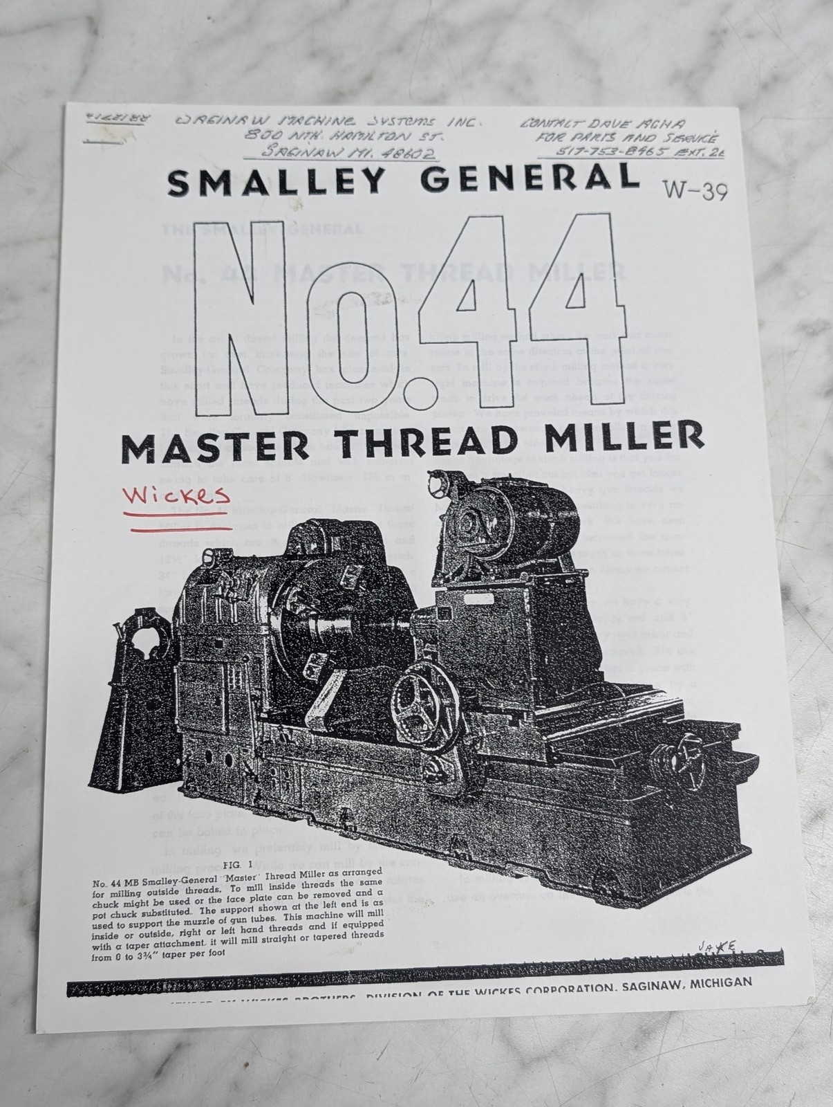 Smalley General No 44 Master Thread Miller W 39 Sales Brochure Literature