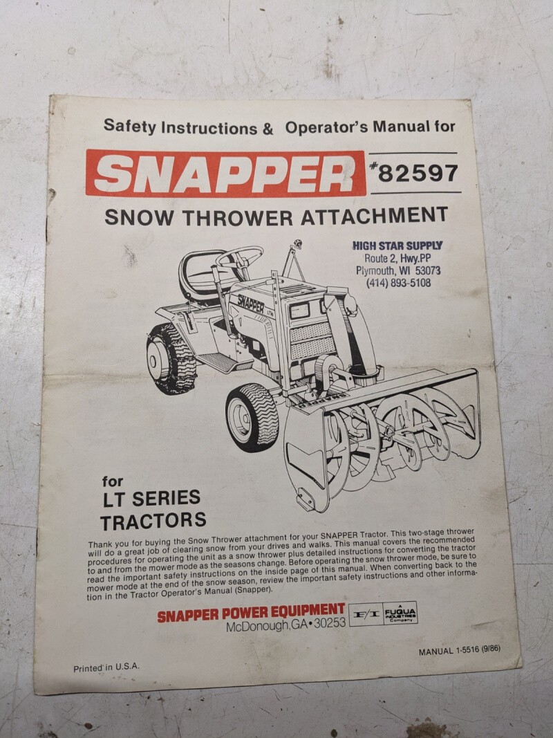 Snapper Safety Instructions Operators Manual Snow Thrower Lt Series 82597