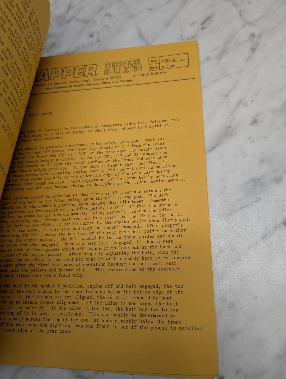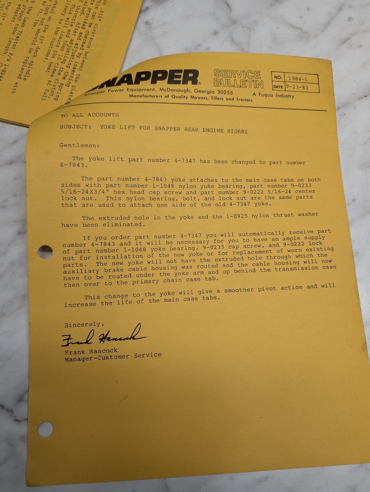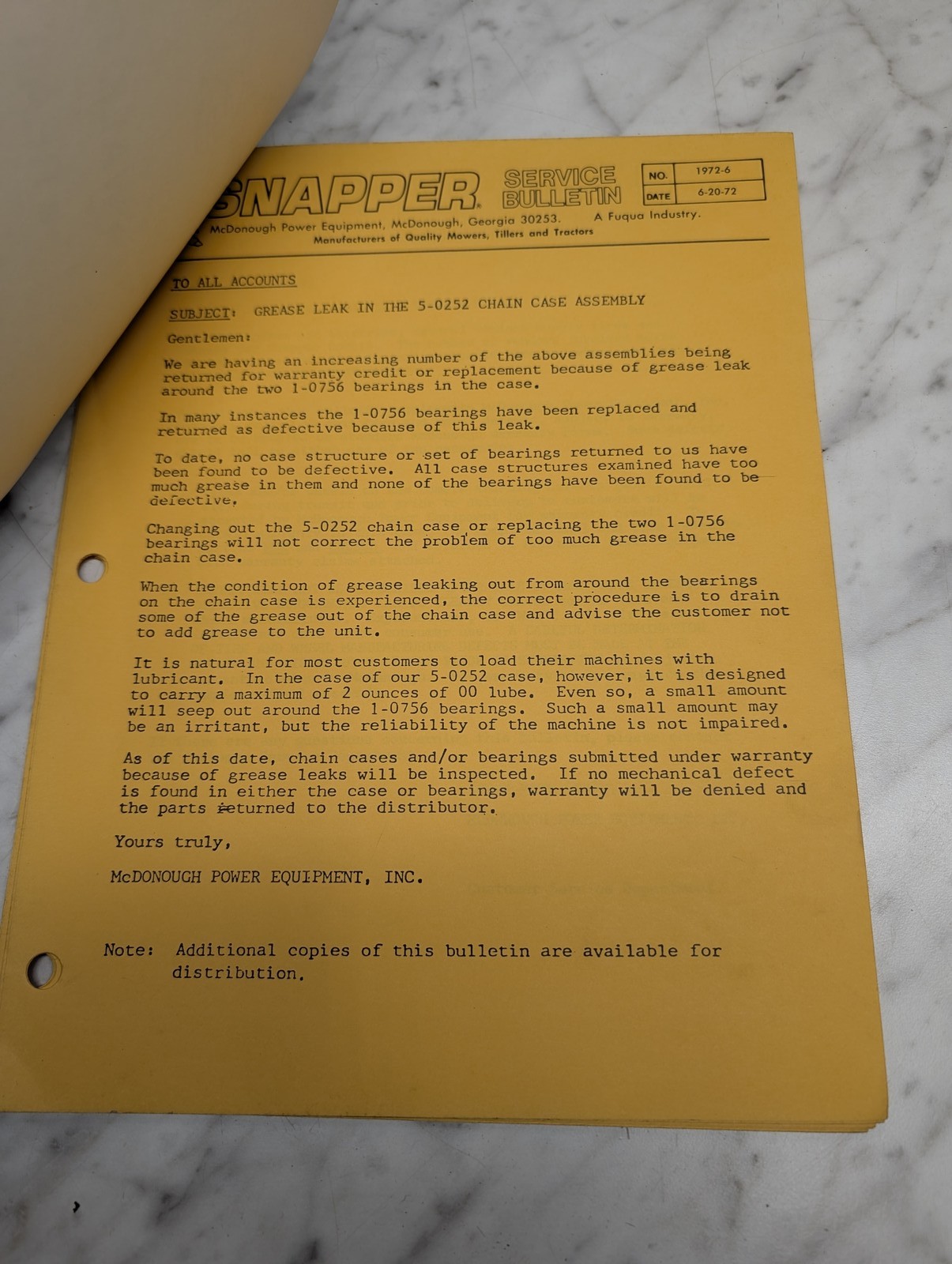 Snapper Service Bulletin Master File Walk Behind Rear Engine Front Tine Tillers
