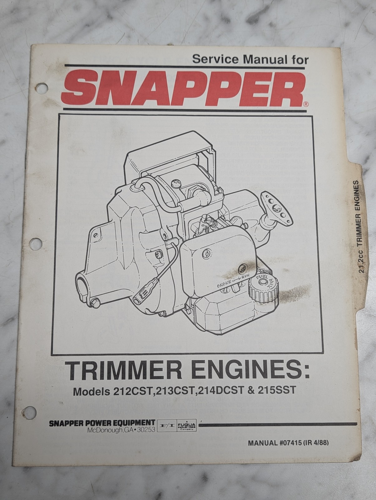 Snapper Trimmer Engines 212Cst 213Cst 214Dcst 215Sst Service Manual Repair Shop